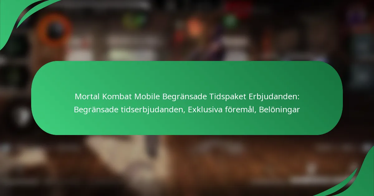 Mortal Kombat Mobile Limited-Time Pack-erbjudanden är exklusiva kampanjer som ger spelare unika föremål, bonusar och utrustning under en kort period. Dessa paket förbättrar spelupplevelsen genom att e...