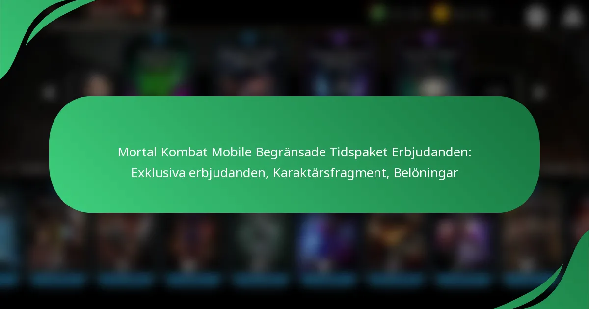 Mortal Kombat Mobile begränsade tidsbundna paket erbjuder spelare exklusiva belöningar, såsom karaktärsfragment och unika föremål, som är tillgängliga under en kort period. Dessa kampanjer förbättrar ...